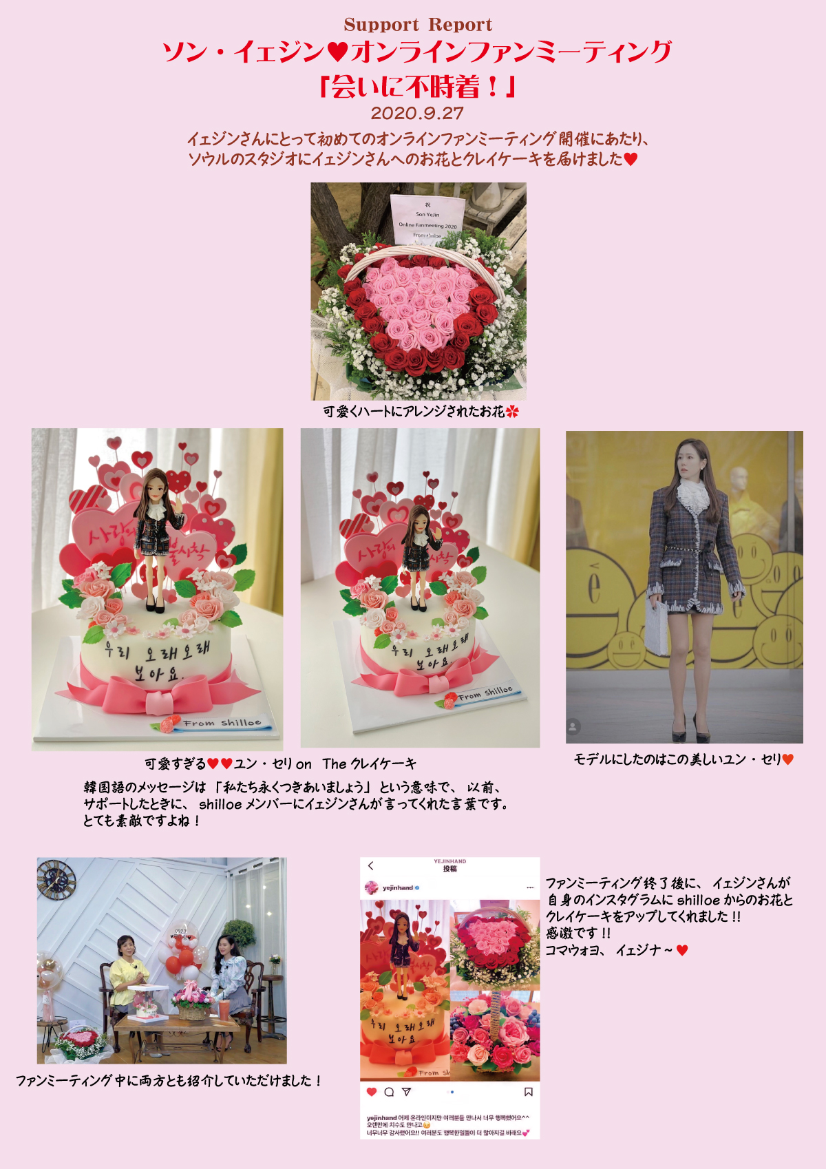 イェジンさんにとって初めてのオンラインファンミーティング「会いに不時着!」の開催にあたり、韓国ソウルのスタジオにイェジンさんへのお花とクレイケーキを送りました。