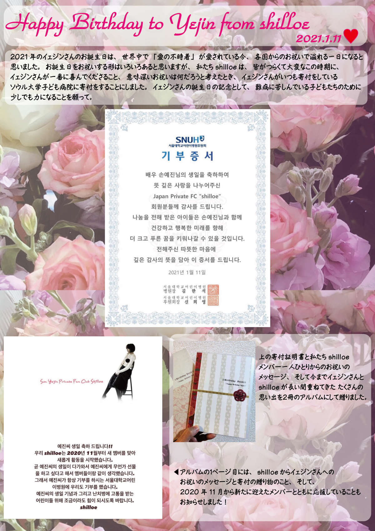 2021年1月11日イェジンさんのお誕生日にshilloeからプレゼントを贈りました。