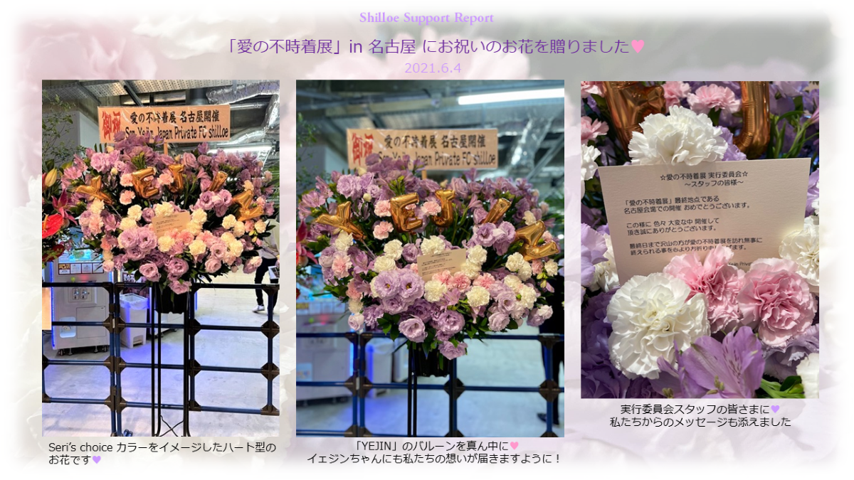 - ★Topics!にshilloeのサポート活動「愛の不時着展in名古屋へお祝いのお花」(2021.6.4)を追加しました。