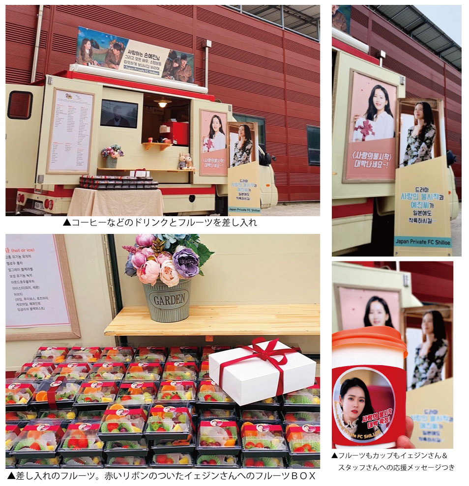 tvNドラマ「愛の不時着」撮影中のイェジンさんとスタッフの皆さんに、ドリンク&フルーツを差し入れました。